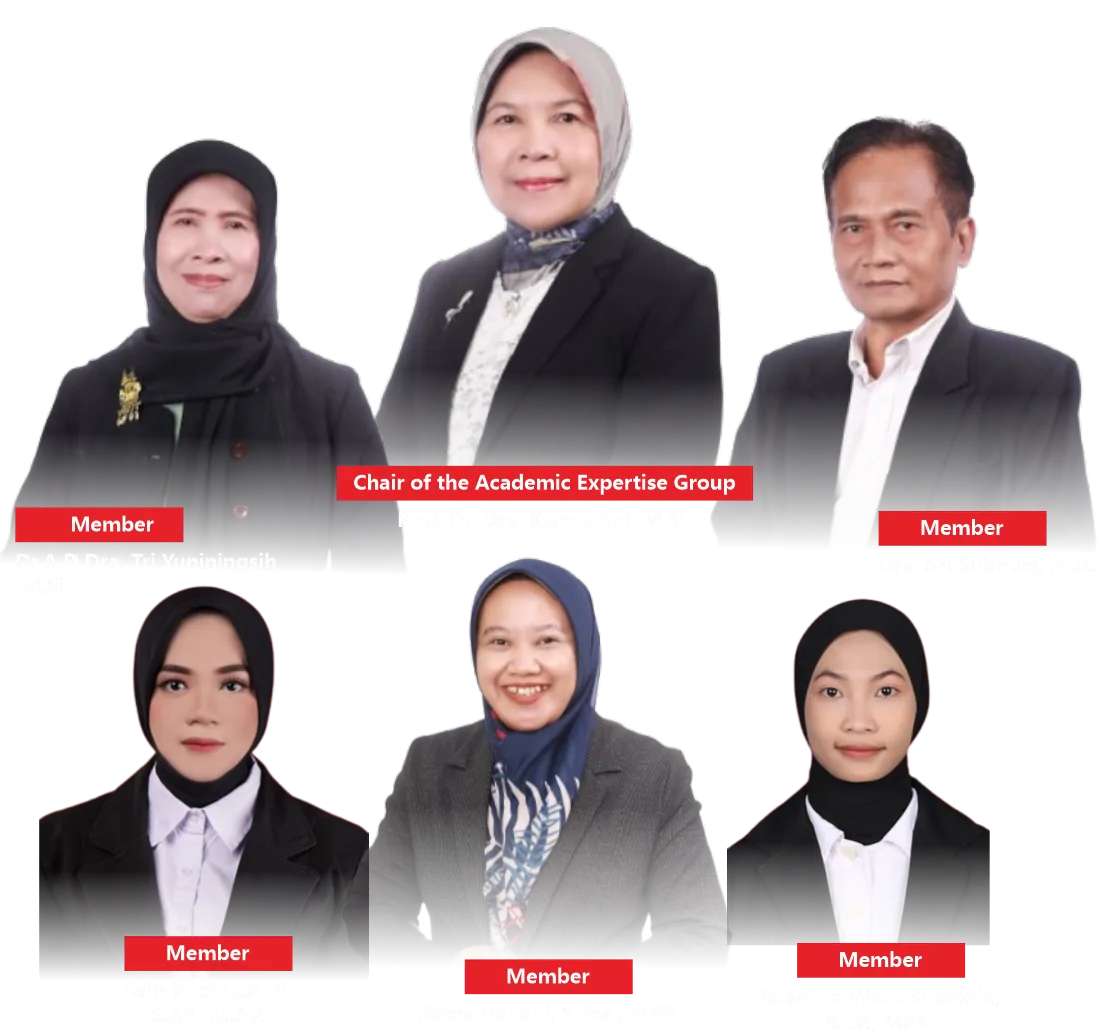This Academic Expertise Cluster (KBK) serves as a forum for lecturers of FISIP Undip to develop expertise in public service management, service innovation, and the improvement of government service quality. It focuses on efficiency, effectiveness, and public satisfaction through research, community engagement, and the development of curricula that are relevant to societal needs.