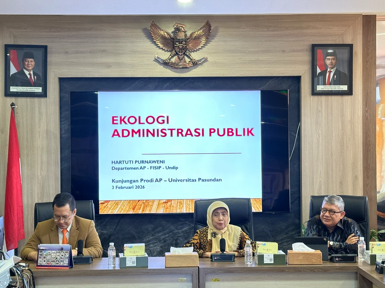 Agenda utama kegiatan diisi dengan kuliah umum yang diselenggarakan oleh FISIP Undip dengan tema Ekologi Administrasi Publik yang disampaikan oleh Prof. Dr. Dra. Hartuti Purnaweni, MPA, Guru Besar FISIP Universitas Diponegoro, dan dimoderatori oleh Dr. Amni Zarkasyi Rahman, S.A.P., M.Si. Dalam pemaparannya, narasumber menekankan pentingnya perspektif ekologi dalam administrasi publik sebagai pendekatan strategis untuk menjawab tantangan pembangunan berkelanjutan serta tata kelola pemerintahan yang berwawasan lingkungan.